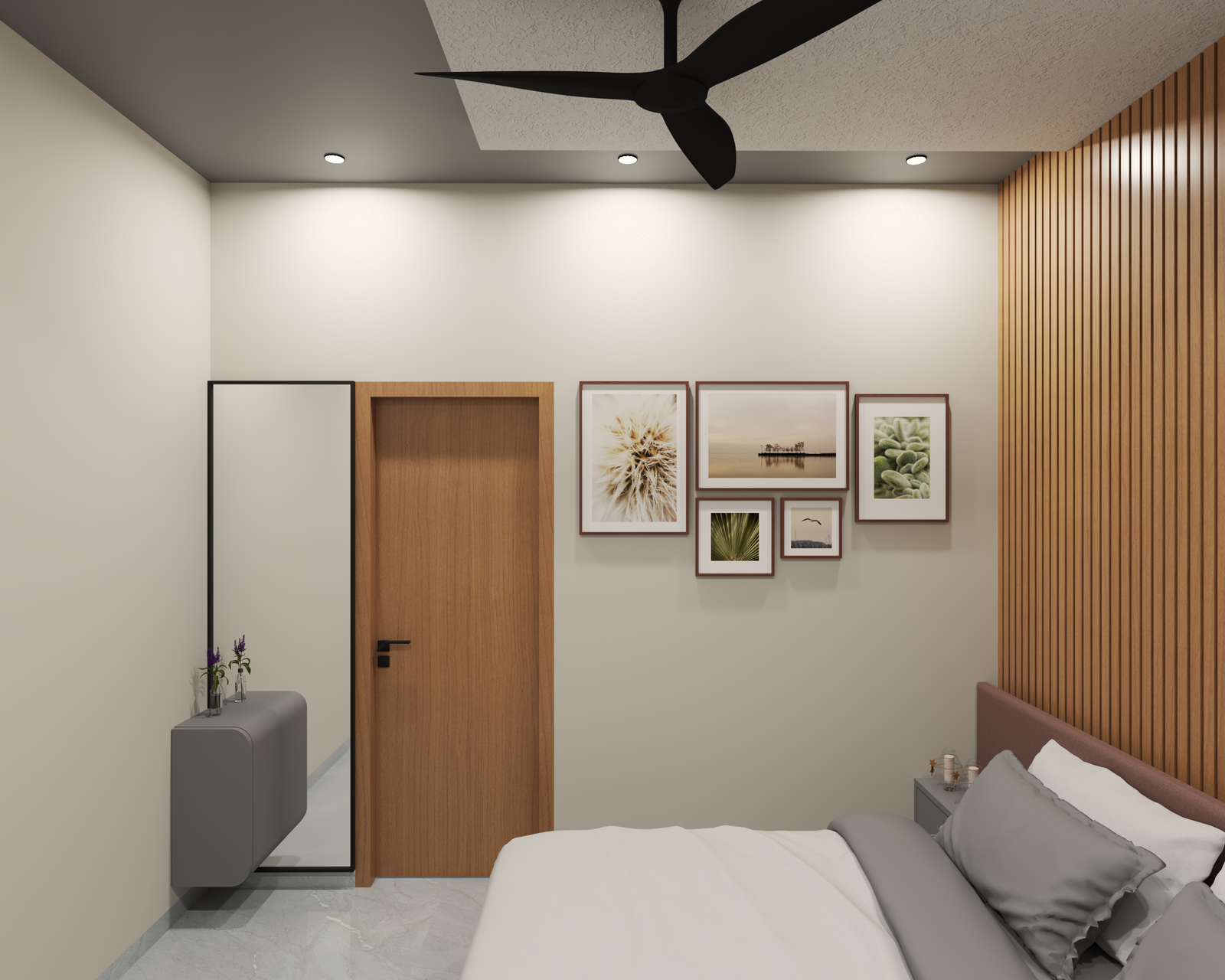 This project masterfully balances the sleek precision of modern design with the inviting warmth of natural materials. Through the strategic use of vertical wood slats, minimalist grey panelling, and clean architectural lines, we created a space that is effortlessly sophisticated and profoundly serene. The design is a testament to the power of texture and subtle illumination, crafting a tranquil retreat where every element contributes to a sense of calm and organized living.